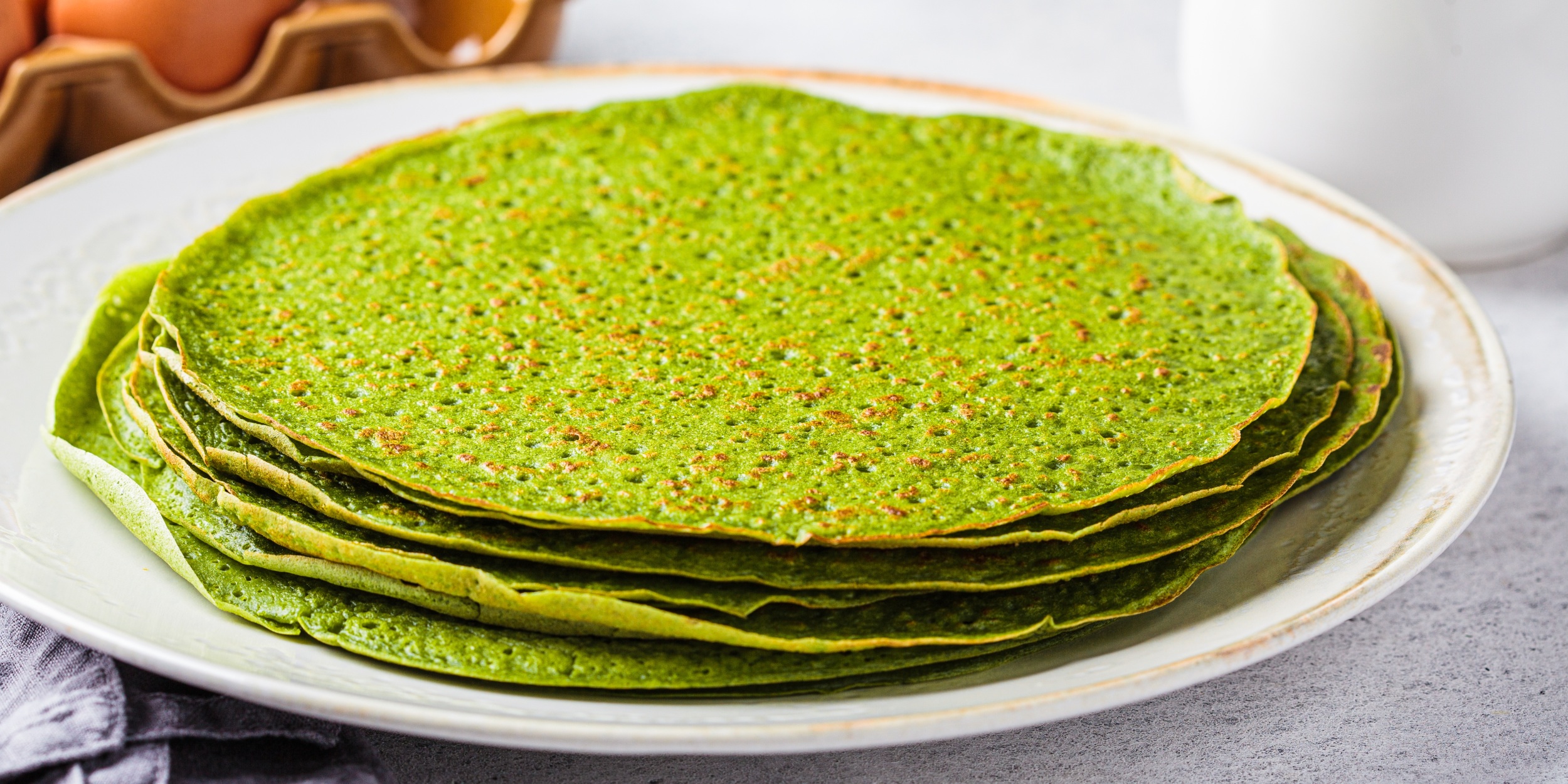 Блюдо наверняка поднимет настроение одним своим видом: блинчики получаются ярко-зелёными.