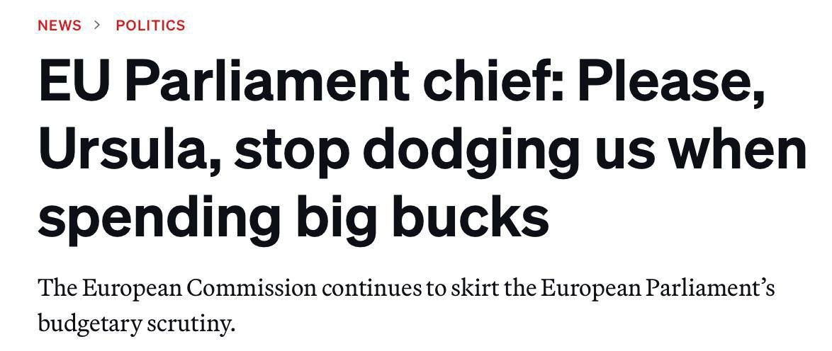 ✔️ "Глава Европарламента: Пожалуйста, Урсула, перестань увиливать от нас, тратя большие деньги"