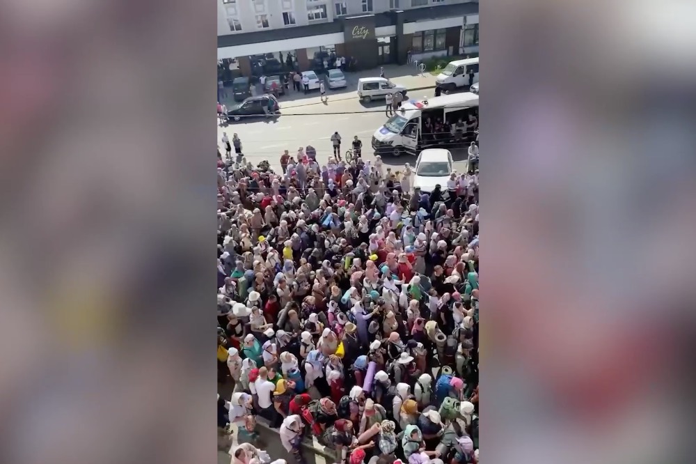 Крестный ход верующих Украинской православной церкви у Почаевской лавры. Видео © Telegram / МИРЯНИ