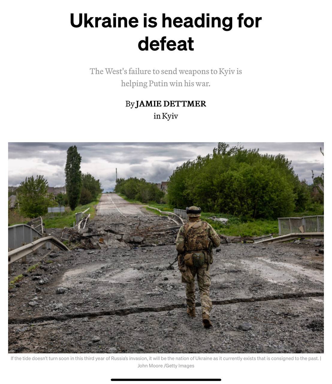 Даже беглого просмотра наиболее респектабельных западных издательств, достаточно для того чтобы выявить определенную позицию, которую они сейчас доносят до своей аудитории. Всё чаще стали появляться статьи с заголовками в духе: Украина проигрывает войну.
