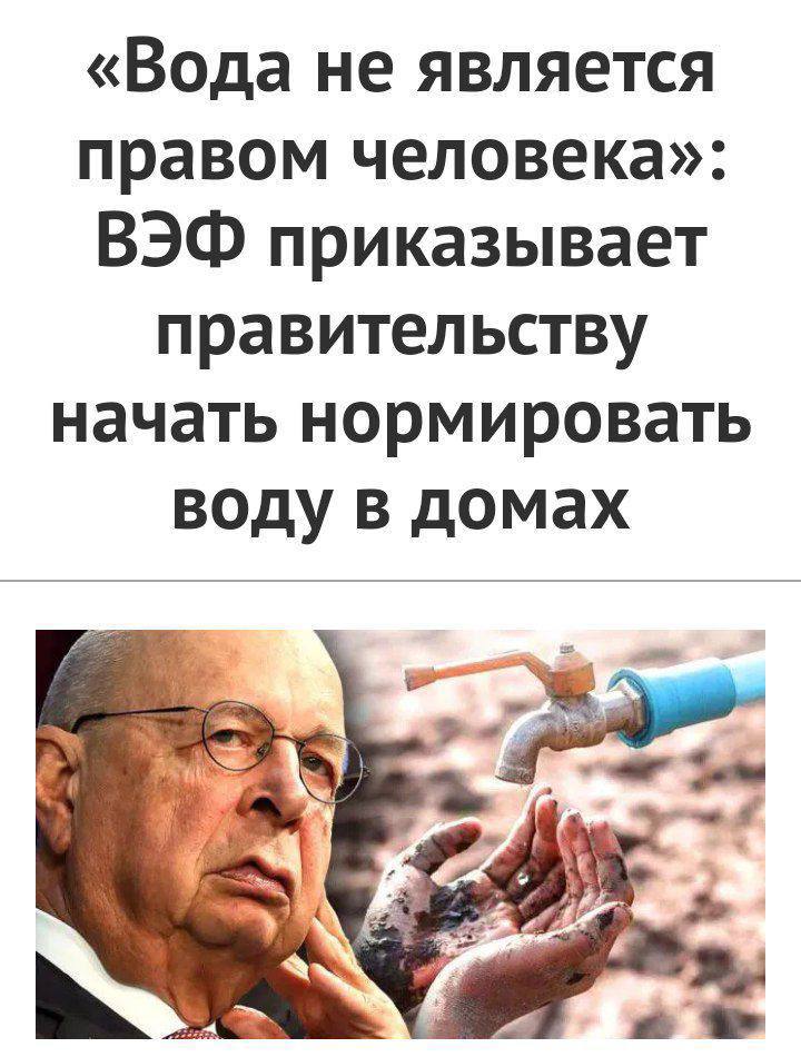 Глобалисты из ВЭФ заявляют, что мировые запасы воды должны контролироваться элитой