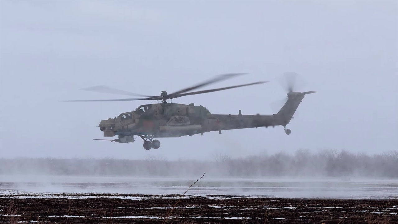 Экипаж армейской авиации на вертолете Ми-28НМ в составе смешанной тактической группы ударил по личному составу и опорному пункту ВСУ в приграничном районе Курской области. Об этом сообщает Министерство обороны РФ и публикует кадры вылета.