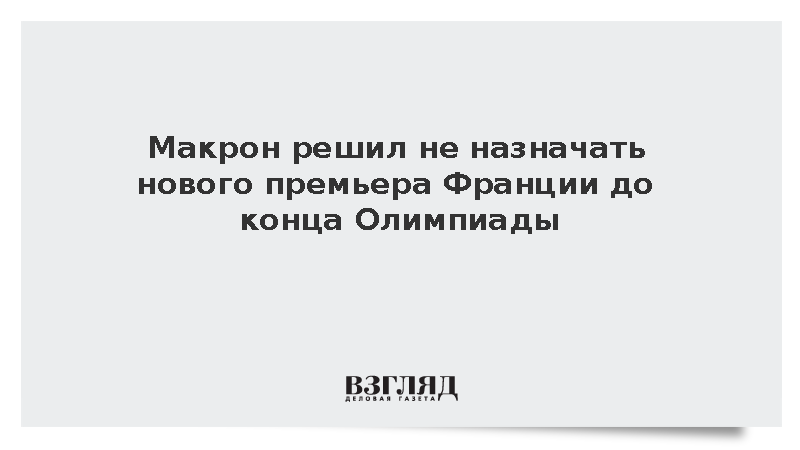 Президент Франции Эммануэль Макрон в эфире телеканала France 2 заявил, что не намерен принимать решение о назначении нового премьер-министра до конца Олимпиады.