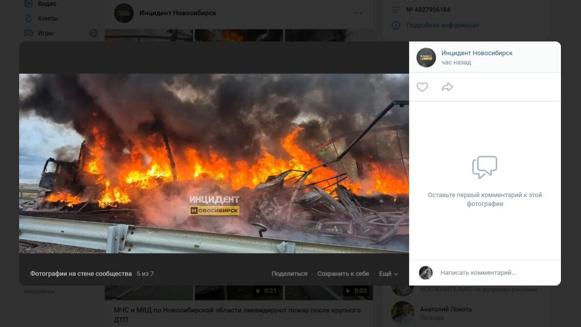 МВД Новосибирской области уточняет, что фур было не две, а три, а водитель «Газели» погиб на месте. Сейчас, по данным ведомства, огонь потушен, а обстоятельства аварии уточняются.