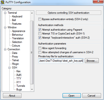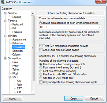 Теперь немного упростим себе работу с SSH. Запускаем PuTTY, в поле Host Name вводим DynDNS-адрес сервера (в нашем примере это был amazec2.dyndns-ip.com). Затем переходим в меню слева в Connection → SSH → Auth и указываем в Private key file путь до нашего ключа в формате ppk. Чуть выше, в разделе Connection → Data есть поле Auto-login username, в которое надо ввести ubuntu (это наш логин). Наконец, в Window → Translation выбираем кодировку UTF-8 и возвращаемся в раздел Session. Здесь в поле Saved Sessions вводим любое имя (например, amazonvpn) и жмём справа Save. Теперь после запуска PuTTY достаточно будет дважды кликнуть по имени сохранённого соединения (amazonvpn) и консоль удалённого сервера откроется сама.