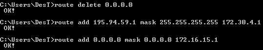 route add 195.94.59.1 mask 255.255.255.255 172.30.4.1