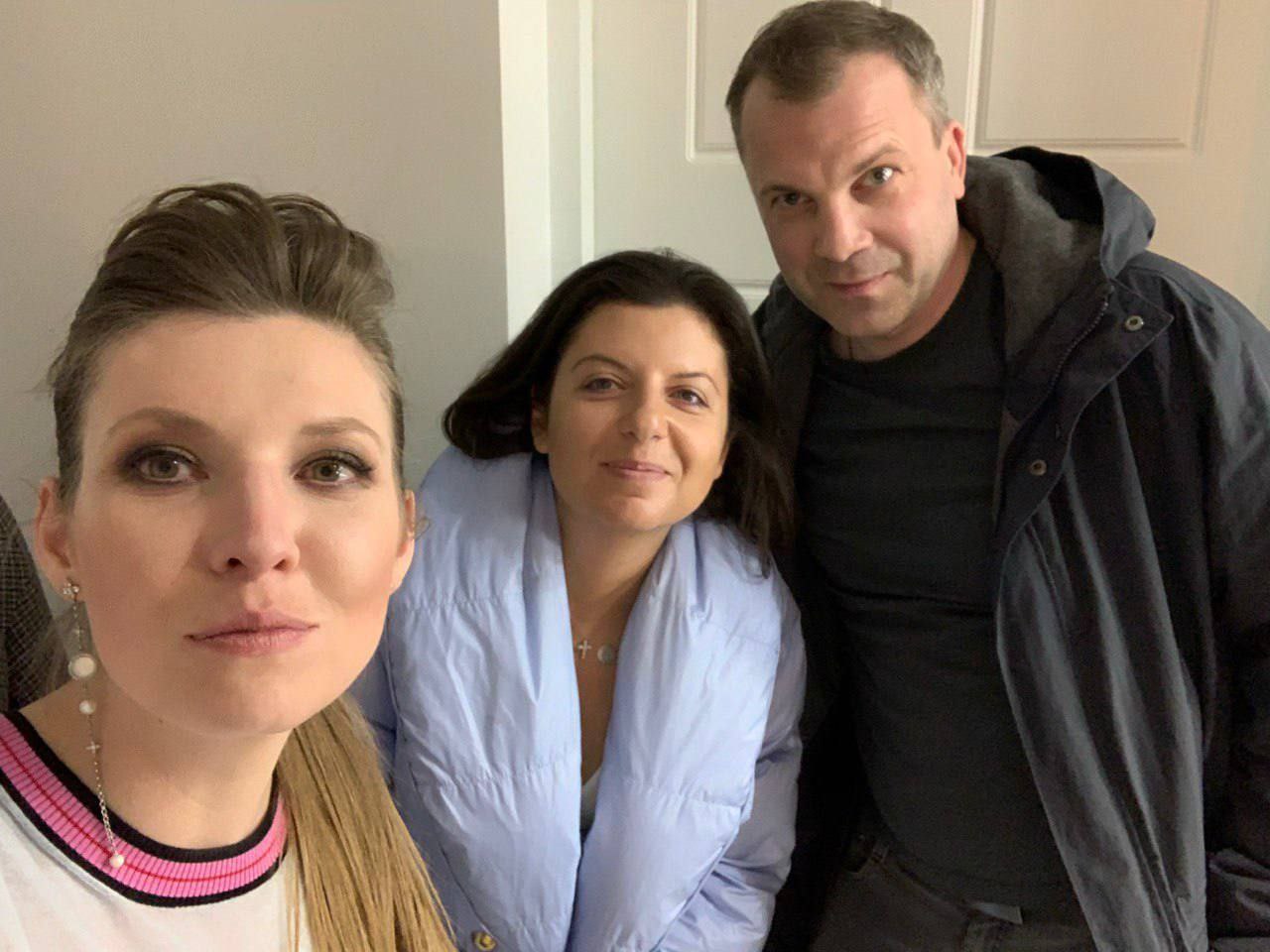 Все друзья поздравляют сегодня с днем рождения 45 лет Маргариту Симоньян, главу Russia Today. Здесь Ольга Скабеева и Евгений Попов, ведущие самого популярного общественно- политического ток шоу 60 минут. Все желают ей силы и удачи. Потому что её муж, с которым у неё много детей, и который тоже известный журналист, Тигран Кеосаян, находится в коме. Поэтому все желают ей и силы и конечно удачи, чтобы выздоровел муж. А друзей у Маргариты очень много. Она является одним из живых символов СМИ России. Мы тоже желаем выздоровления и восстановления семейного счастья.
