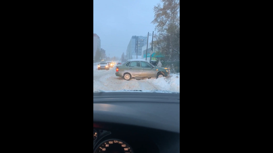 Ночной снегопад сделал дороги карельской столицы непроходимыми, а подрядчик не успевает чистить улицы от сугробов и снежной каши. Водителям приходится ездить по городу очень медленно, постоянно огибая застрявшие в снегу автомобили.