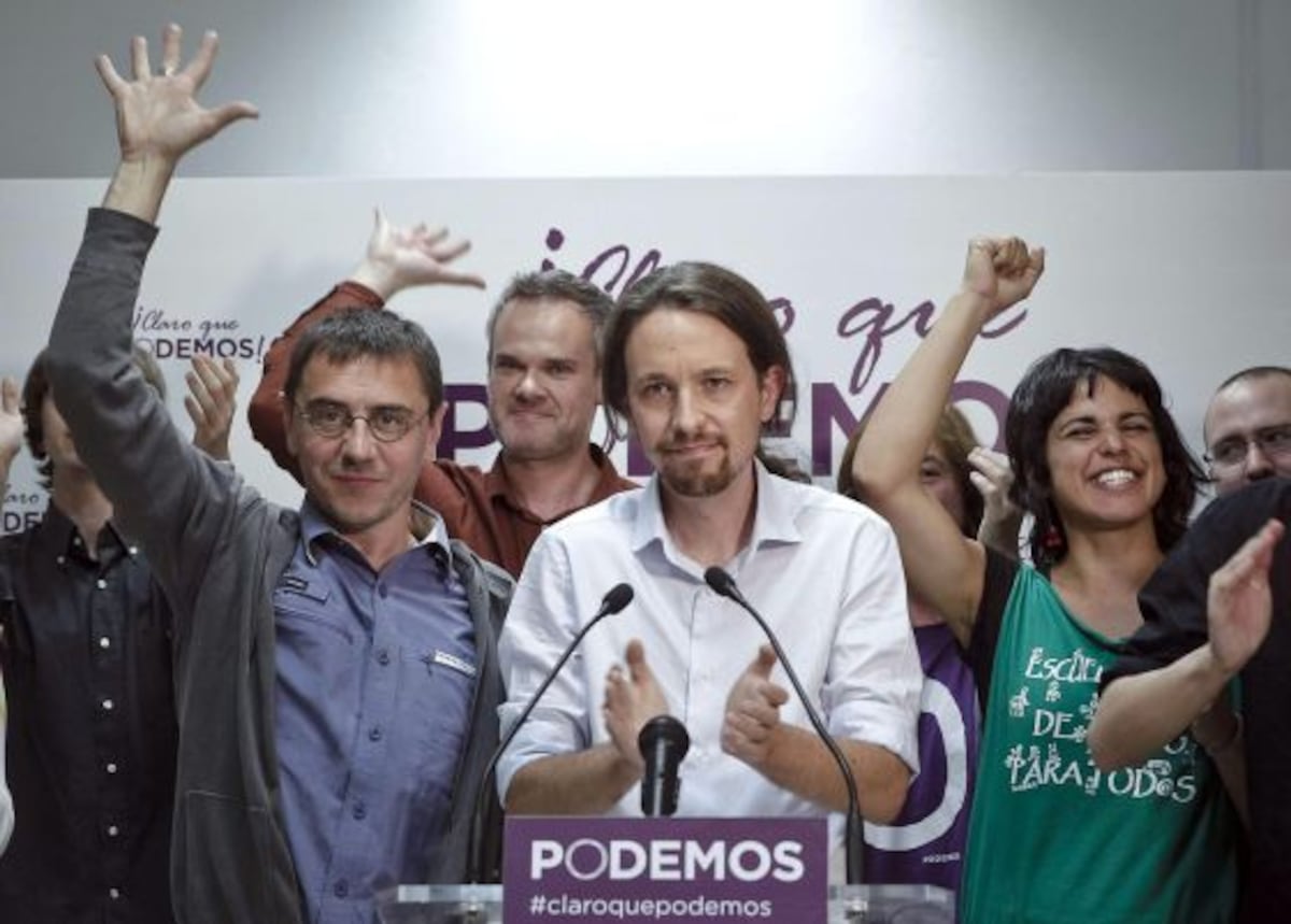 Juan Carlos Monedero, uno de los fundadores del partido —“yo hice el primer programa de Podemos”, recuerda orgulloso— explica así aquel gran éxito europeo en 2014: “Había dinamitado la Monarquía, con el Rey cazando elefantes en Botsuana en medio de la crisis; el bipartidismo estaba quebrado, con aquella idea del 15-M de ‘El PP y el PSOE la misma mierda es’; luego dinamitó el modelo económico con aquella mano bajándole la nuca a Rato [Rodrigo, exvicepresidente del Gobierno] para que entrase en un coche policial. Y de la calle surge una fuerza política fresca, de gente universitaria, pero con vínculos populares, diferente y con un discurso regeneracionista. IU emerge en 1986 empujado por el movimiento anti-OTAN. Y Podemos surge en 2014 empujado por los indignados del 15-M”, concluye. Pero el contexto ha cambiado: “El régimen reaccionó y lleva diez años dedicando todos sus esfuerzos a romper Podemos en mil pedazos. Incluso creó una policía política. El PSOE vivió transformaciones muy profundas y rompió la estigmatización que tenía. La Monarquía se ha renovado. Podemos también se ha tomado su tiempo para reconstruirse tras la fragmentación por la derecha con el errejonismo y por la izquierda con los Anticapitalistas. Las europeas van a ser el punto de inflexión para ver si realmente se reconstituye o tiene que pasar página, aunque el gran error de Sumar hasta ahora ha sido dar por muerto a Podemos”.