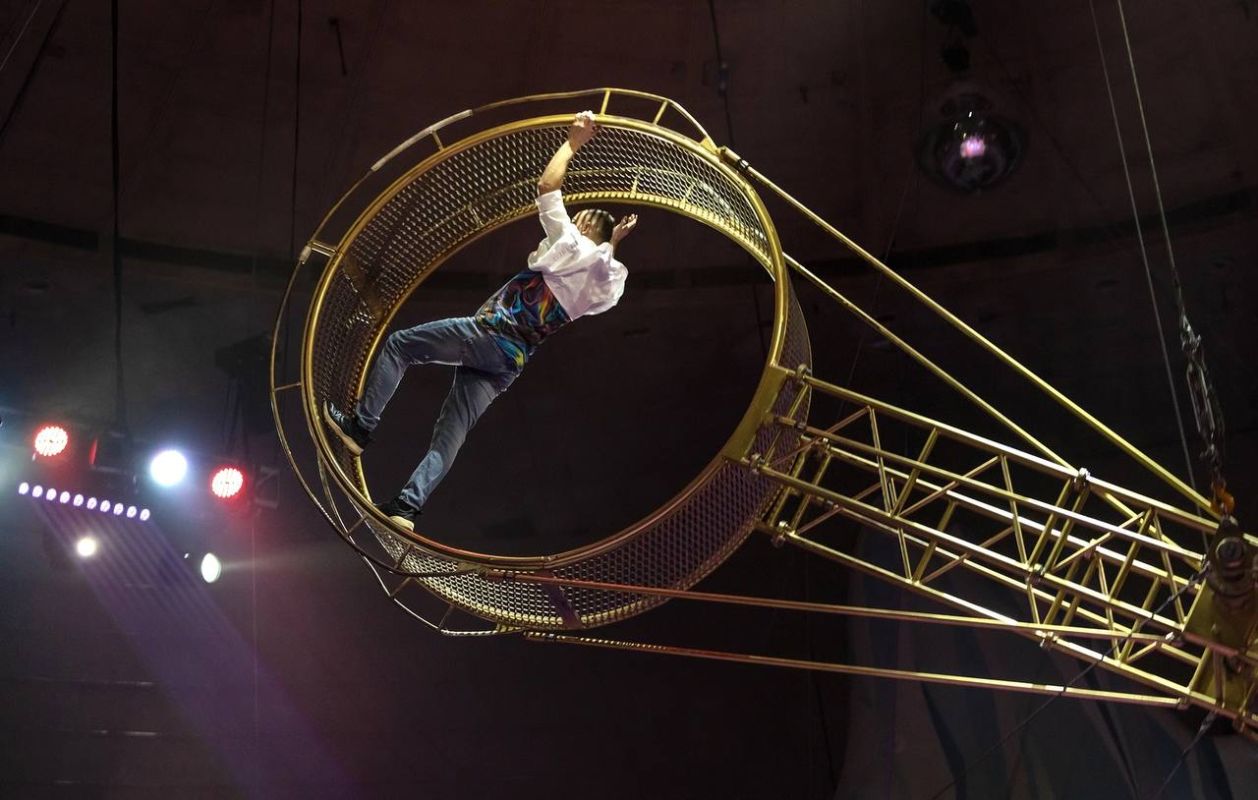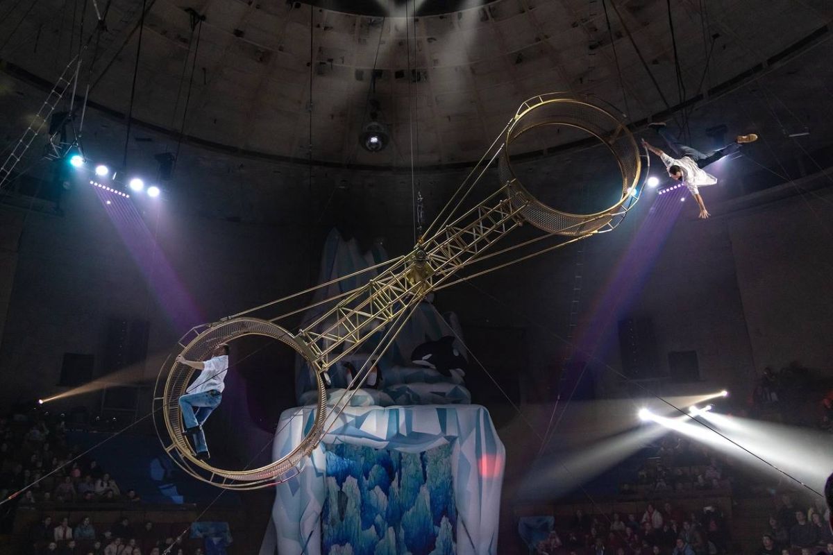 — Номер состоит из конструкций, двух колёс, которые подвешиваются над манежем на 11 метров, страховки в таком номере нет. Колёса вращаются, и ничего не прицепишь. Когда я первый раз залезал, смотрел сверху вниз, мне было страшно, а небольшое волнение присутствует всегда. Зрители ещё больше волнуются, когда понимают, что может случиться. Я о плохом не думаю, так как репетируем мы постоянно и держим себя в форме.