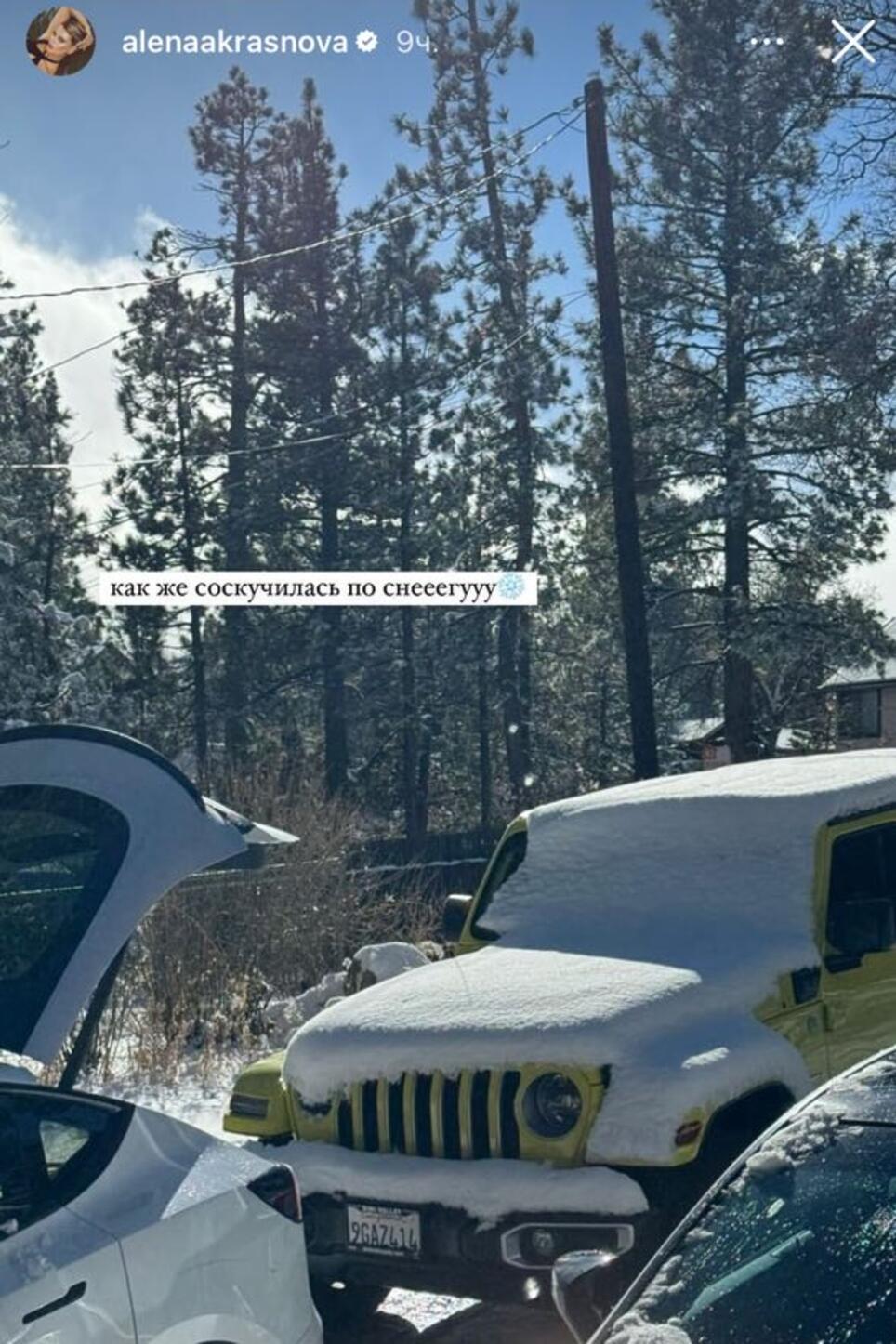 Краснова показала в «сторис» заснеженные пейзажи и призналась, что очень скучала по такому виду. Вместе с Никитой они отправились в горы, чтобы покататься на сноубордах и полюбоваться природой. Однако без происшествий не обошлось: Преснякову повредили машину. Произошло это прямо возле дома, где был припаркован джип артиста. Там в него врезался другой внедорожник, водитель которого не смог справиться с управлением на обледенелой дороге. Никите же оставалось лишь наблюдать за тем, как разбивают его автомобиль.