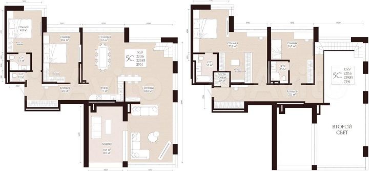 Абсолютный лидер нашего рейтинга — пятикомнатные хоромы в строящемся клубном доме «Никольская Collection». За 115 миллионов вы получаете почти 230 «квадратов». Чтобы вы понимали масштаб: одна только гостиная здесь больше, чем средняя «трешка» в хрущевке (почти 69 кв. м).