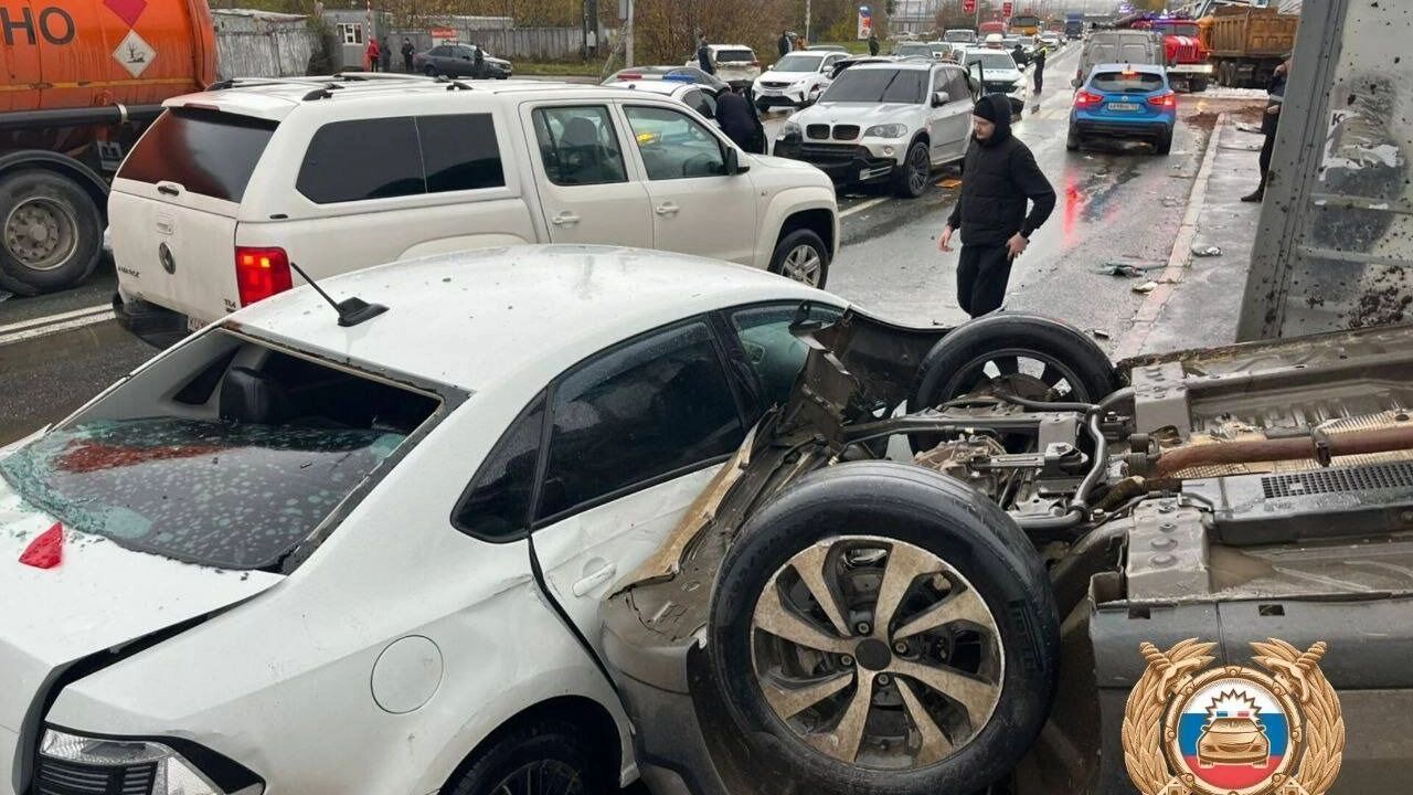 Авария случилась накануне утром на пересечении улиц Новоженова. С места аварии уже появились свежие кадры, по которым видно, что скорость транспорта была высокая и ее остановила только фура напротив. Известно, что водитель без тормозов был гружен песком.