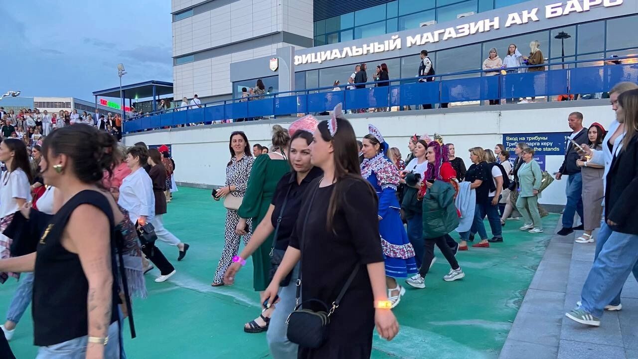 Еще за час до концерта преданные фанаты стали ручейком стекаться к «Татнефть Арене». Когда ты встречаешь на улице первого человека в кокошнике, то думаешь: «Странно». Но ближе к площадке их становится столько, что невольно думаешь, что странно быть без него. Количество кокошников на квадратный метр просто зашкаливало. Кто-то пришел в венках, кто-то в полном русско-народном обмундировании, кто-то шел в расписных платках, ну, минимум флаг с собой — обязательно.
