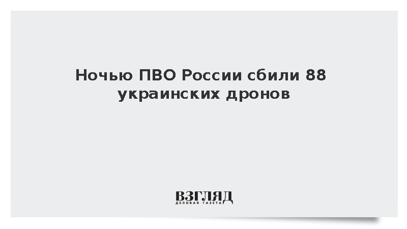 Российские средства ПВО за ночь уничтожили 88 украинских беспилотников, большинство из которых были перехвачены над Белгородской областью, сообщили в Минобороны России.