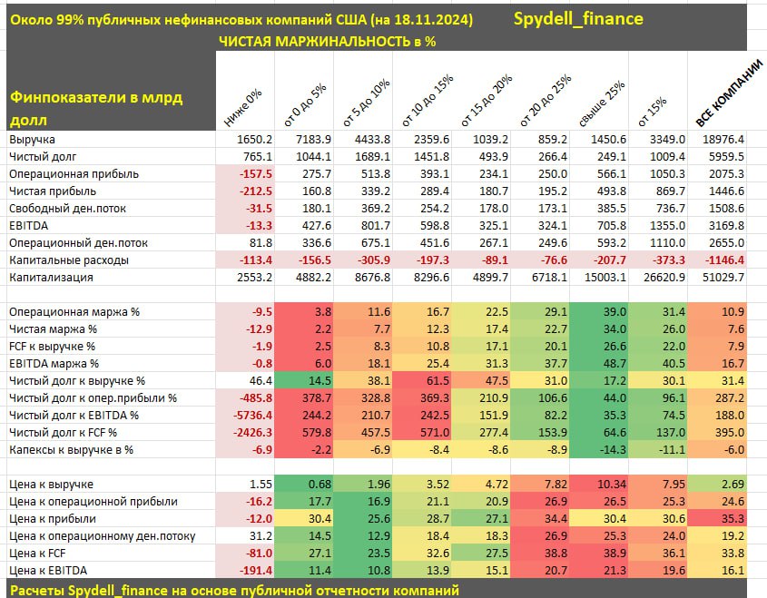 Это эксклюзивная оценка рынка в моменте на утро 18 ноября от Spydell_finance. В таблице я сделал распределение по уровню маржинальности.