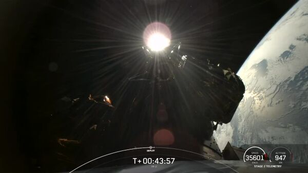 Момент отделения модуля «Афина» от второй ступени ракеты-носителя Falcon 9