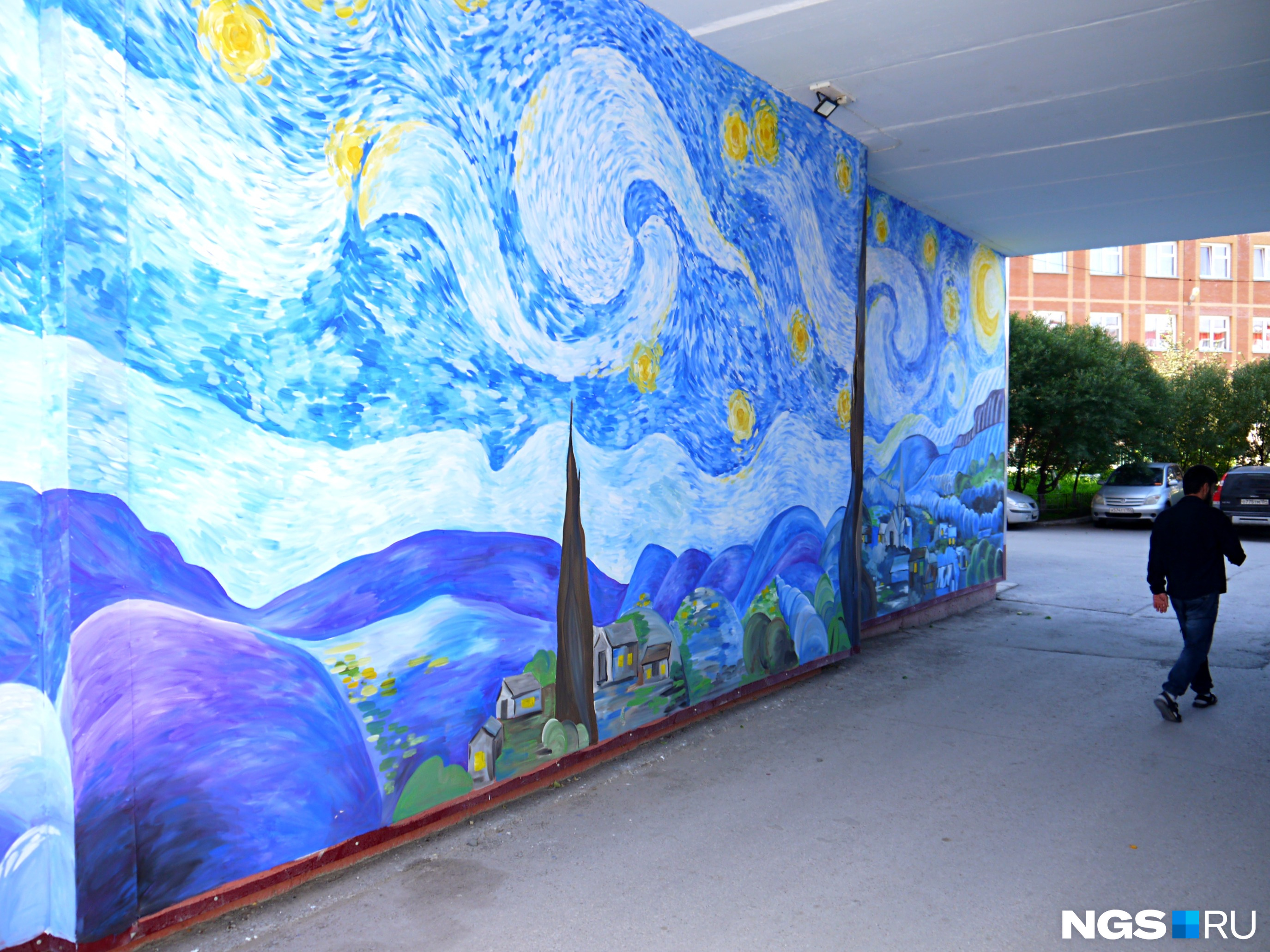 В Северо-Чемском микрорайоне на стене жилого дома появилась новая картина на стене или мурал. Точнее, на двух стенах: две художницы по заказу управляющей компании превратили арку в панельной девятиэтажке в интерпретацию картины ван Гога «Звёздная ночь». Это далеко не единственная яркая работа такого рода здесь. После того как художники с разрешения жильцов самостоятельно расписали несколько подъездов, местные ЖЭУ стали чуть ли не соревноваться в том, чтобы сделать свои дома ярче, чем у соседей. Подробнее о самом разрисованном микрорайоне — в материале обозревателя НГС Стаса Соколова.