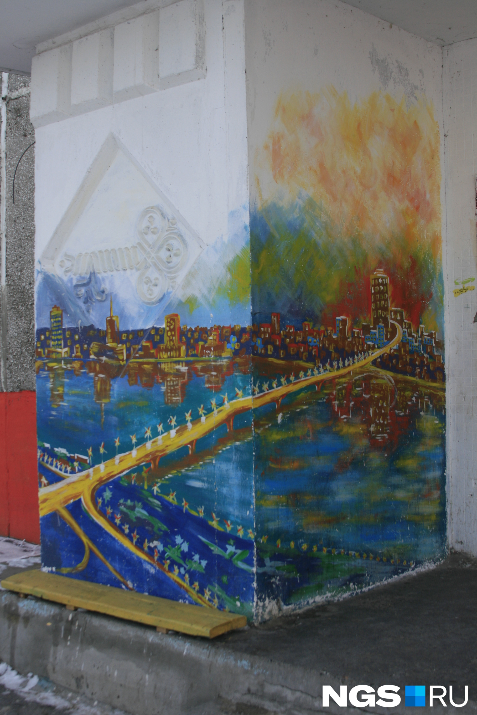 Но главная достопримечательность Северо-Чемского — это обилие настенных рисунков. Началось всё с дома на Саввы Кожевникова, 13, который стоит на берегу, а из его окон открывается вид на Обь и железнодорожный мост. Где-то в 2008–2009 годах здесь появился первый рисунок на бетонных плитах, которые отделяют вход в подъезд от двери в технические помещения (в том числе зону мусоропровода). На рисунке был изображен мост через большую реку. Узнать в рисунке новосибирские виды было трудновато — скорее, это была некая мечта о будущем: перспективы строительства третьего моста занимали публику.