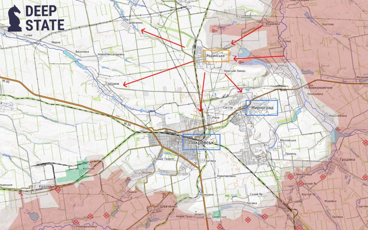 Военная логика. Армия России продолжает бои за агломерацию Покровск(Красноармейск название в ДНР) - Мирноград (Димитров название в ДНР). Это большая агломерация с населением до войны в 375 тысяч человек.