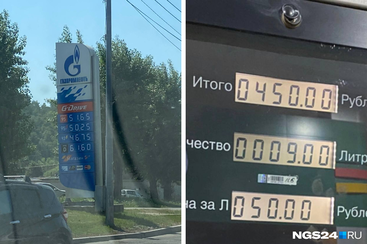 — Заливаю G-95 на «Газпроме». В начале мая литр был 50,45 рубля. Вчера заливал уже 51,50, — поделился автомобилист Станислав с корреспондентом NGS24.RU.