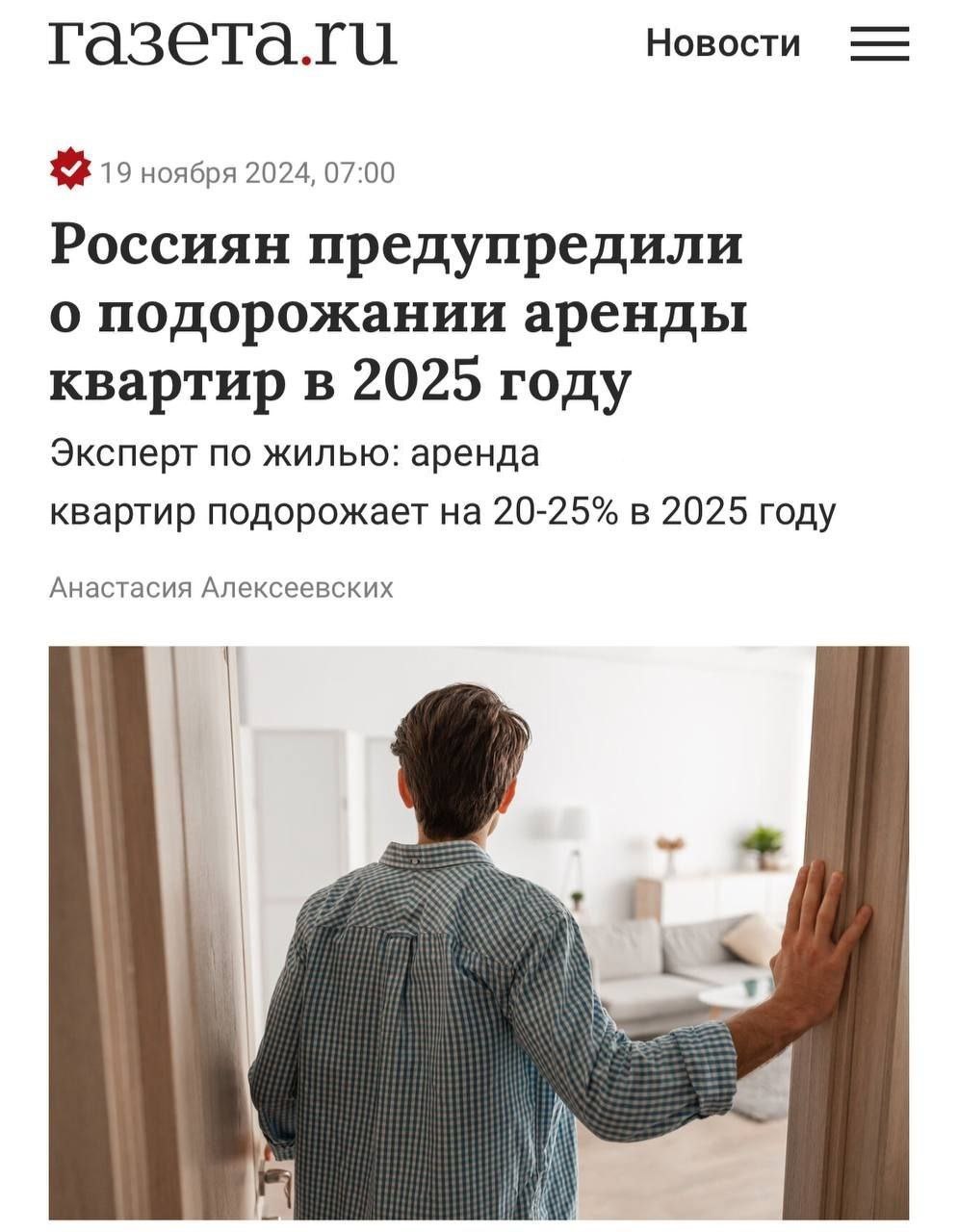 ⚡️ Цены на аренду квартир вырастут ещё на 25% и выше в 2025 году — эксперты