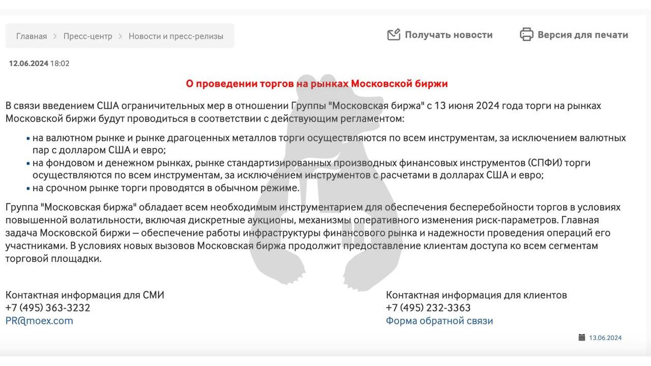 Вашингтон поздравил Россию с праздником — масштабные санкции затронули финансовые и газовые проекты США ввели блокирующие санкции против нескольких финансовых российских компаний: - Московская биржа; - Национальный расчетный депозитарий (НРД); - Национальный клиринговый центр (НКЦ); - СОГАЗ; - банк «Точка» (оказывающий поддержку российским боевым подразделениям, по мнению Штатов); - Гознак. Мосбиржа официально сообщила, что с 13 июня не будет проводить торги долларом и евро. Также она не будет проводить торги на фондовом и денежном рынках инструментами с расчетами в этих валютах. Кроме того, в санкционный список попали проекты «Арктик СПГ 1» и «Арктик СПГ 3», «Газпром инвест», «Мурманский СПГ», компании «Русгаздобыча», «Золото Селигдара». Минфин США заявил, что Штаты готовы ввести санкции против иностранных банков за операции с российскими финансовыми организациями, в том числе Сбербанком и ВТБ. Под вторичные американские санкции попали компании из Болгарии, Казахстана, Сербии, Киргизии, Китая, Южной Африки, Турции и ОАЭ. Они помогали РФ обходить западные ограничения. Услуги облачных сервисов в РФ теперь также под санкциями США. Экспортные ограничения введены для поставок программного обеспечения в Россию и Белоруссию. Вашингтон запрещает предоставление услуг в сфере программного обеспечения и IT любому лицу на территории РФ.