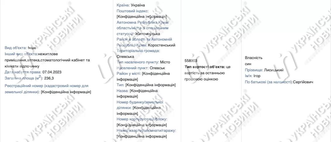 7 апреля 2023 года сын мэра Игорь купил нежилое помещение, аптеку, стоматологический кабинет и комнаты отдыха. Площадь недвижимости составляет 236,3 квадратных метров. Стоимость купленного составила 558 903 гривен.
