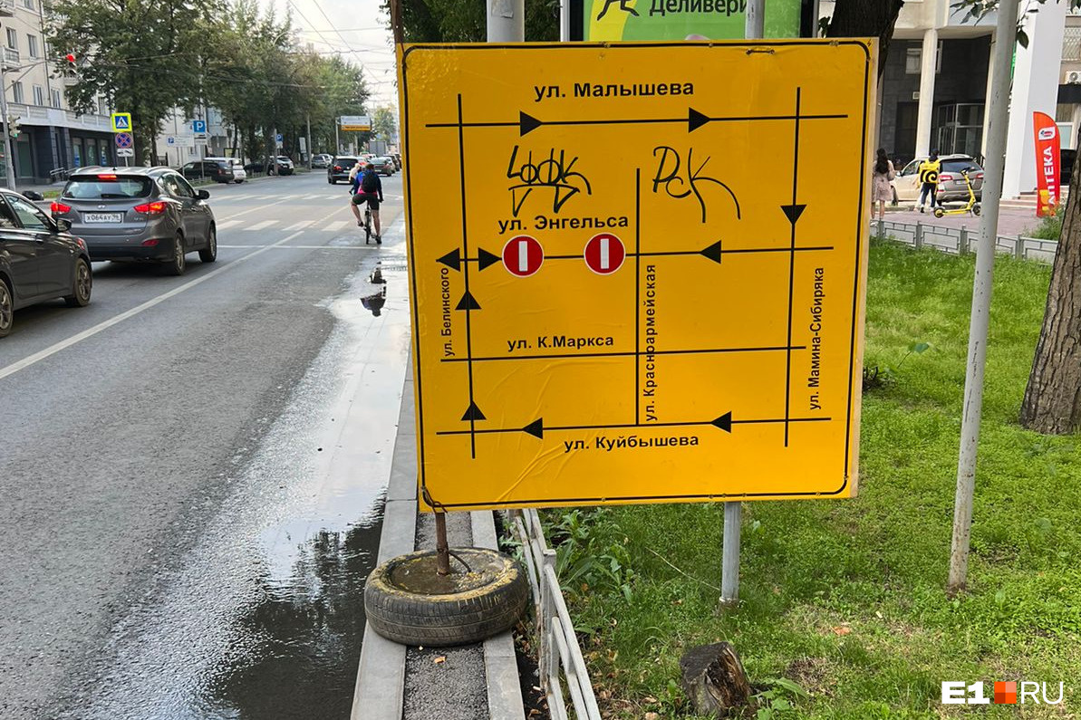 В Екатеринбурге водителей массово штрафуют за поворот направо на перекрестке улиц Белинского и Энгельса. Раньше там висел знак «Въезд запрещен», и жители дома на Энгельса, 15 заезжали во двор в объезд — с улицы Мамина-Сибиряка. Сейчас участок дороги у дома ремонтируют, и рабочие завесили знак «кирпич» и разрешили поворот с Белинского, чтобы жители могли хоть как-то заехать к дому.