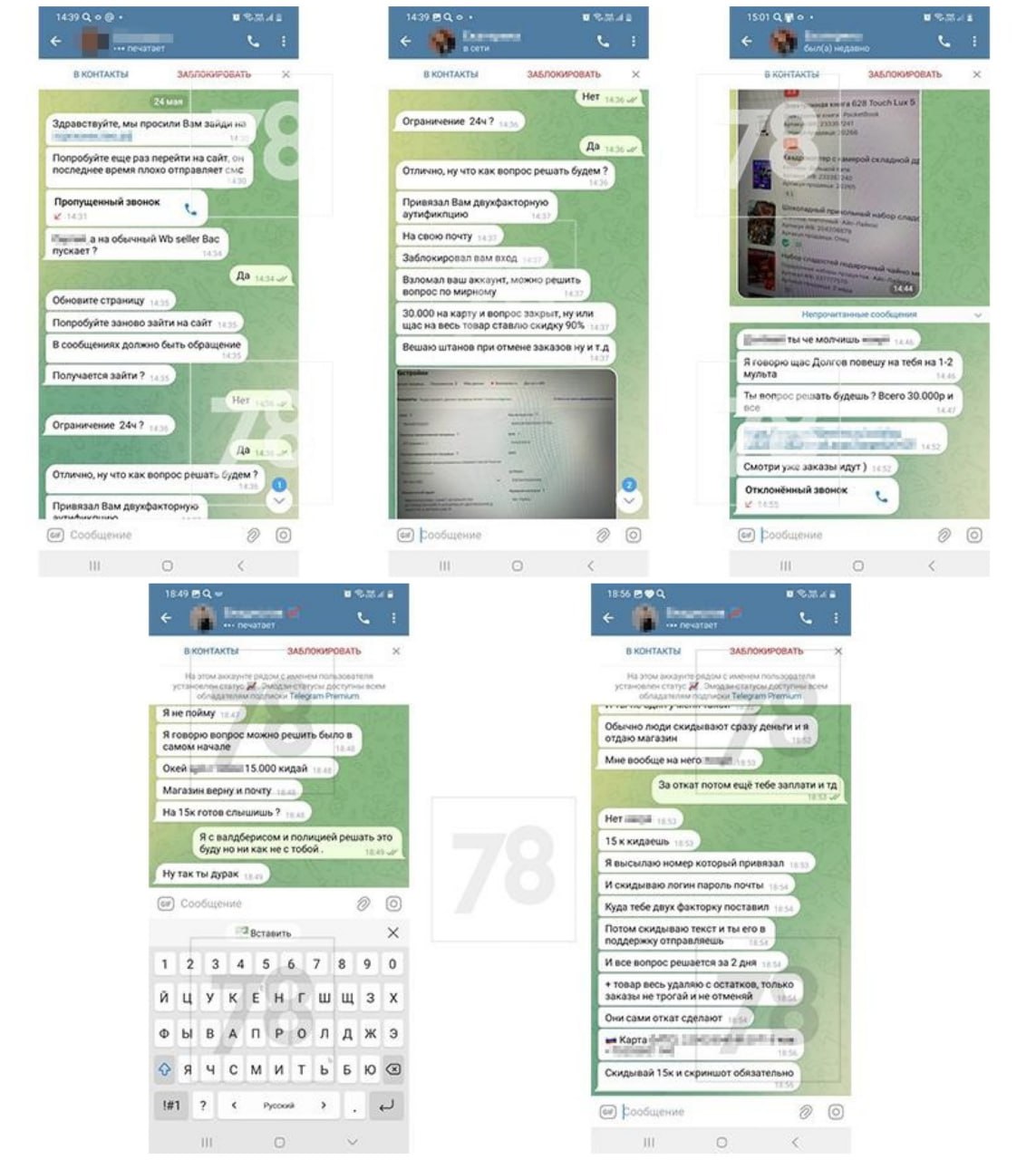 Тут же ему пришло сообщение в Telegram от незнакомки, которая потребовала сначала 30, а потом 15 тыс. рублей для возвращения доступа. Предприниматель платить мошенникам отказался, понадеявшись на службу поддержки маркетплейса.