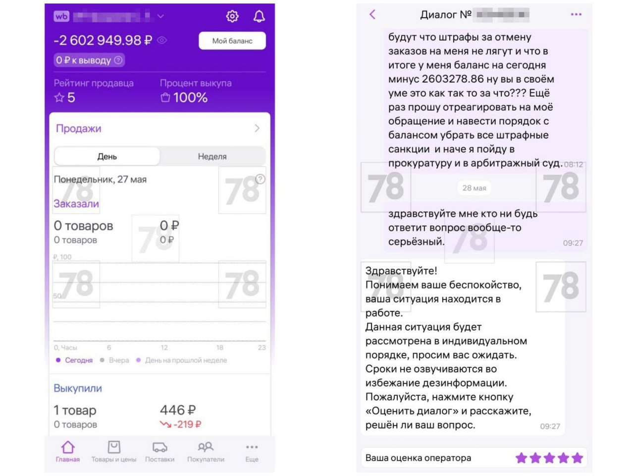 Сутки аккаунт был взломан — за это время он получил огромное количество заказов примерно на 6,5 млн рублей. В службе поддержки Wildberries посоветовали самостоятельно отменить и обнулить все заказы, что Сергей и сделал, однако после этого площадка прислала ему штраф в 2,5 млн рублей.