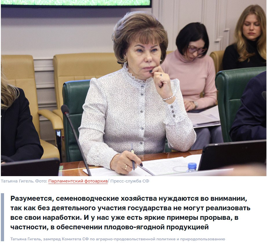 Считаю, что сегодня нет оснований полагать, что наша страна пропадёт без западных семян, потому что даже в течение последних нескольких лет она сделала значительный рывок в области селекции. В беседе с «СенатИнформом» отметила, что отечественное семеноводство обзавелось достаточными ресурсами, и все проблемы в этой сфере решаются в максимально мобилизационном режиме.