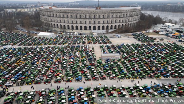 Более 2500 фермеров на тракторах устроили демонстрацию на нюрнбергской городской площади, сообщает издание Münchner Merkur.