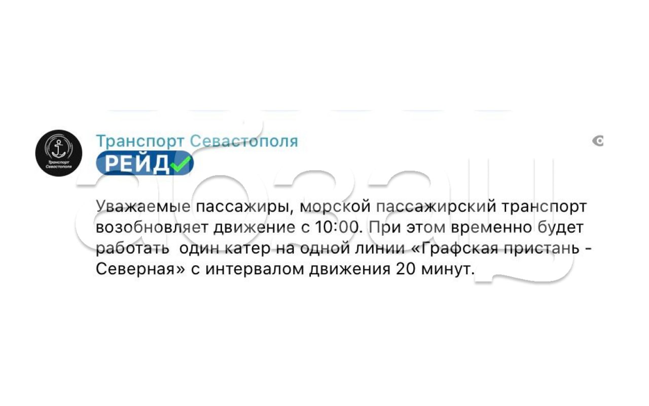 В Севастополе восстановлено движение морского пассажирского транспорта, закрытое после воздушной атаки ВСУ