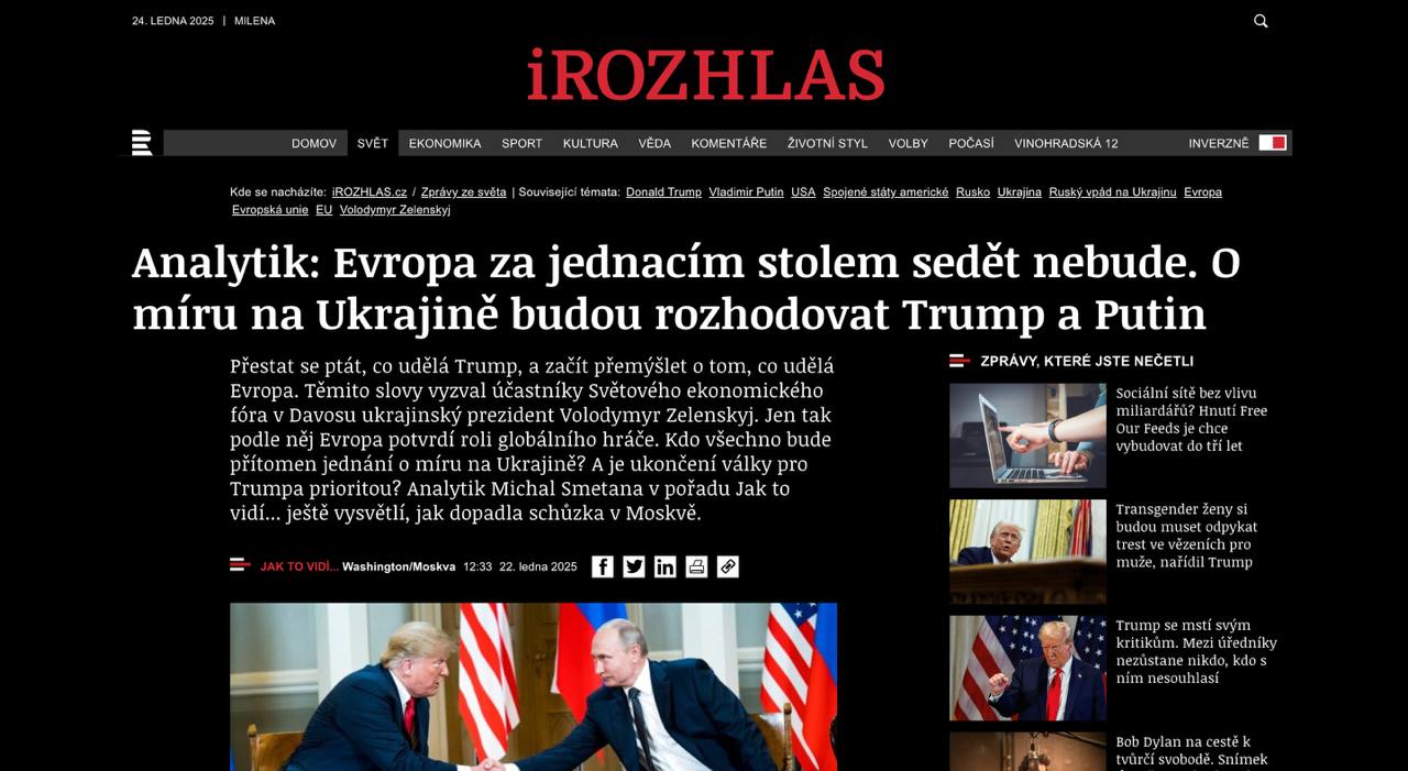 Соединенные Штаты, по крайней мере при Дональде Трампе, не горят желанием вкладывать американские ресурсы в “защиту мира”. Напротив, они хотят, чтобы Европа позаботилась об этом в будущем: "Европа как игрок должна сыграть свою роль. Но мы должны считаться с тем фактом, что международная политика очень непредсказуема, как и оба упомянутых государственных деятеля“, - заключает Михал Сметана.