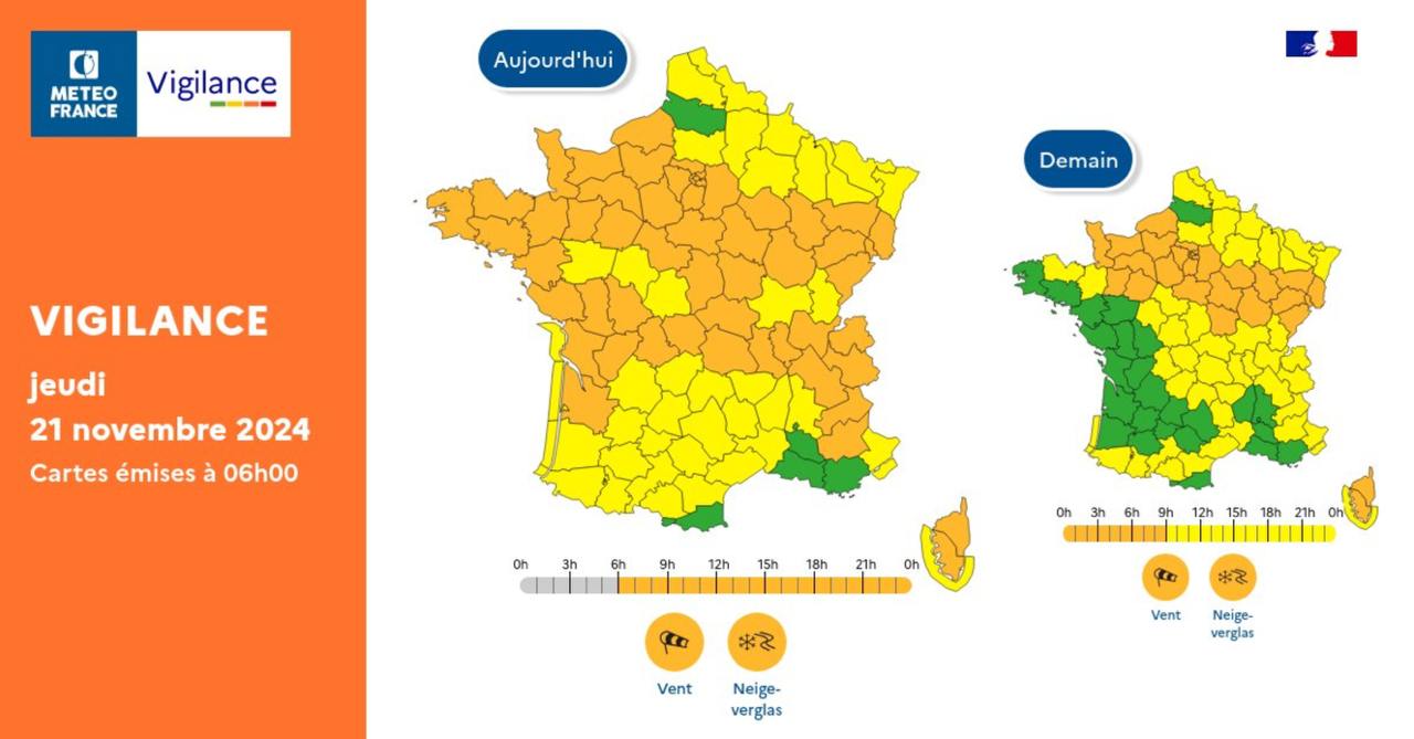 🇫🇷 Снегопады во Франции: в половине регионов введён предпоследний оранжевый уровень опасности