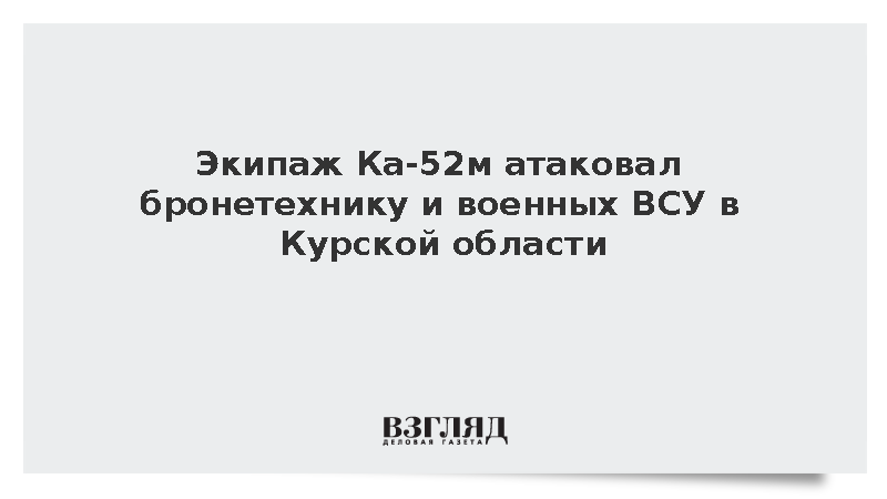 Вертолет Ка-52м российского Минобороны атаковал бронетехнику и личный состав ВСУ в Курской области, успешно выполнив боевую задачу и вернувшись на базу.