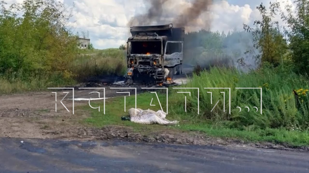 Удар тока с высоковольтной линии поразил большегруз — машина полностью выгорела, а водитель сгорел заживо. Этот большегруз был задействован в восстановлении дорог в Пильнинском районе — дороги там разбили во время строительства платной федеральной трассы М-12. Этот большегруз только привез асфальт с завода.