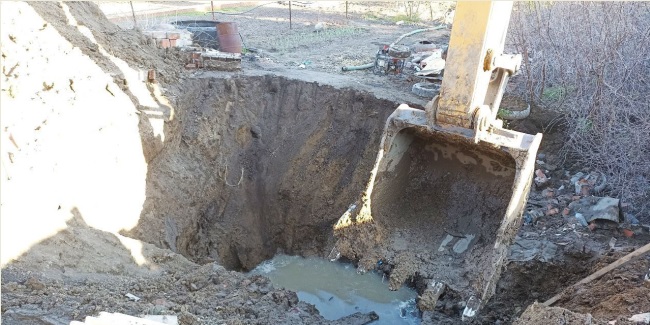 В экстренные службы 6 мая в 17 часов поступили сообщения об обрушении стены водяного коллектора (на фото) в поселке Новоомский, где устраняли аварию два слесаря АО «Омскоблводопровод» (по данным ЕГРЮЛ, директор компании Дмитрий КРЕМЕР).