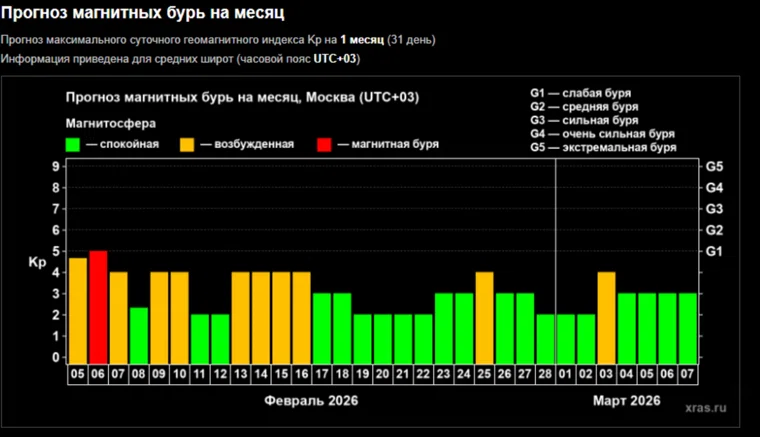 Магнитные бури в феврале 2026