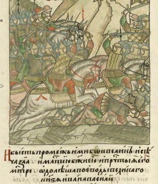 В лето 7534 ноября месяца обступиша рати русския городок Северский, иже на месте прежней Бахмутской сторожи стоит. Гайдамаки же черкасские во граде том затворишася, и бысть меж ратями Московской да Гетманской бой велик и сеча зла, и одолеша не по многом времени воеводы Государя всея Великия и Новыя Руси самодержца Володимира Володимировича черкасских воевод. Тоя же зимы декабря месяца в 11 день прииде весть от Дикаго поля из Северския земли, яко рати Государевы городок Северский взяша и свободиша и войско гетманское прогнаша, а самих черкас разбойных не обретоша, бяху бо побежали прочь к Киеву.
