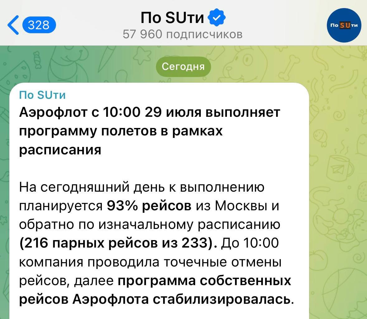 ⚡️«Аэрофлот» ВОССТАНОВИЛСЯ после вчерашней хакерской атаки — по сообщениям СМИ, уже с 10:00 рейсы выполняются по расписанию.