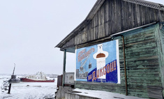 Улыбающийся белый медведь держит в лапах свежеиспеченный каравай. Мимо этой картинки на деревянном здании в порту диксонцы проходят каждый день. Она напоминает о временах, когда на Диксоне швартовались круизные лайнеры «Чехов» и «Чкалов» и жители самого северного поселка России приветствовали прибывших издалека гостей.