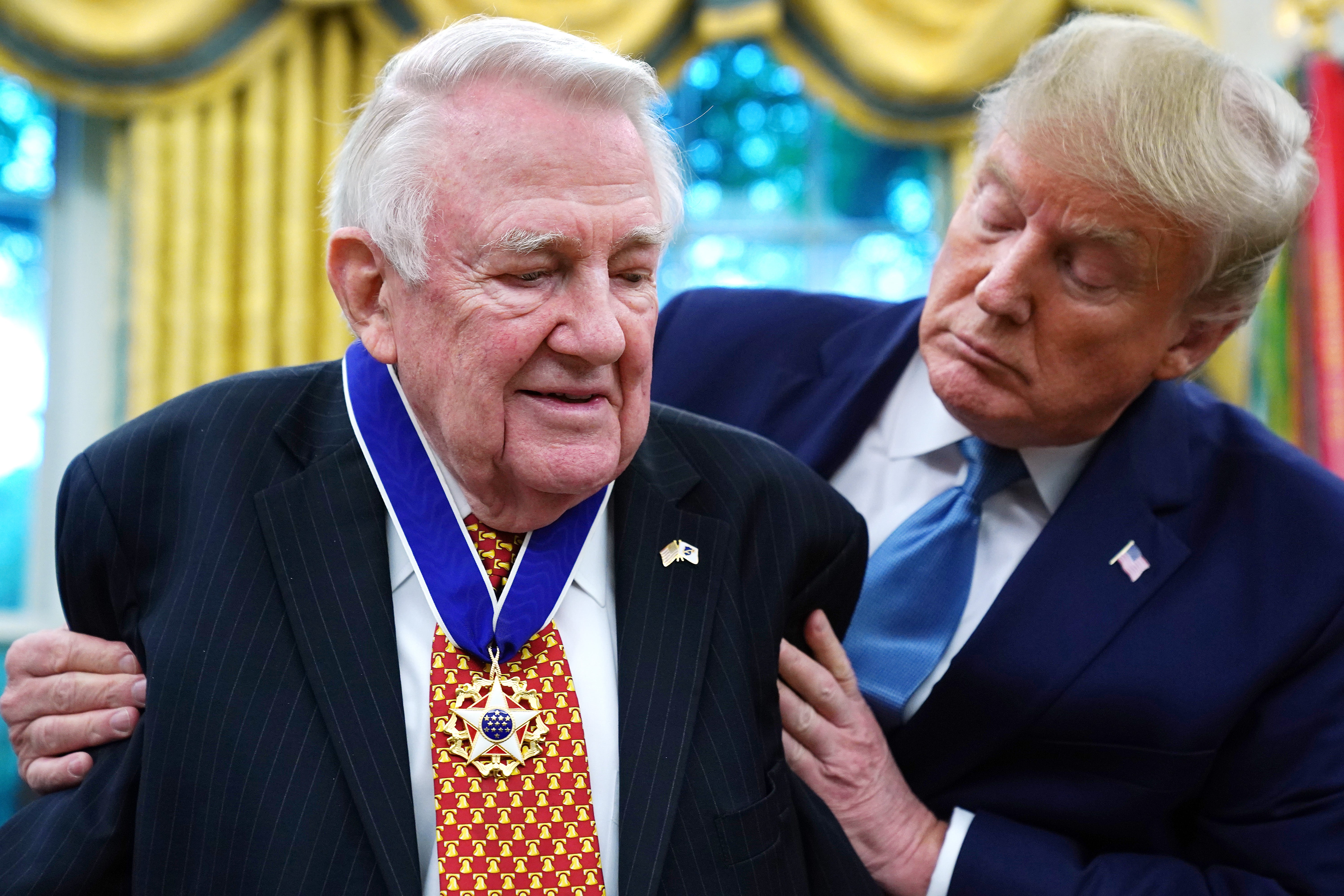 Former Attorney General Edwin Meese delivers remarks after being awarded the National Medal of Freedom by U.S. President Donald Trump during a ceremony in the Oval Office at the White House on Oct. 8, 2019 in Washington, D.C. ((Photo by Chip Somodevilla/Getty Images))