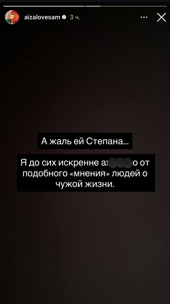 «Жалетели Степы. Так, как я отношусь к своему мужчине, не описать словами, уверена, что многие из вас это знают. <…> Такое может сказать только тот, кто совершенно ничего не понимает в людях», — написала Айза.