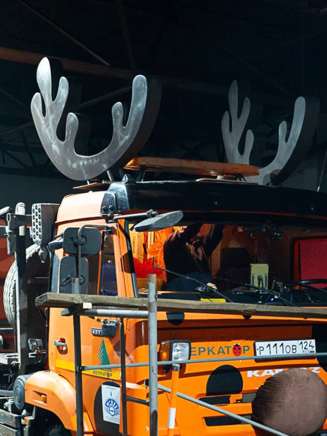 Автомобили украсили для поднятия новогоднего настроения у горожан. На одной машине появились ветвистые рога, а на другой – роскошные русые косы.