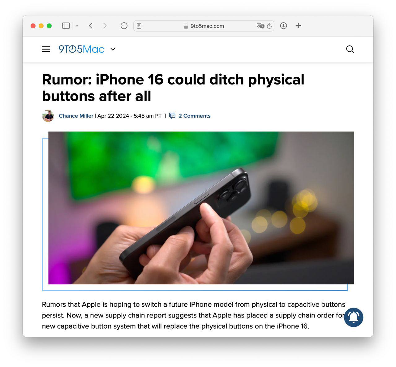Apple могут отказаться от всех физических кнопок. В новом отчете компании заметили заказ на модули, которые позволят установить на iPhone 16 емкостные кнопки с обеих сторон.