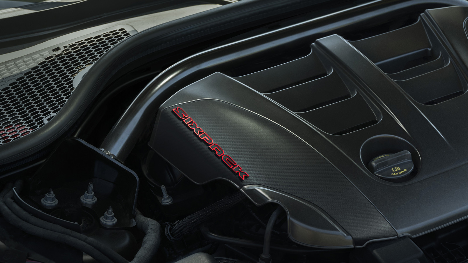 Информация о «начинке» бензинового Dodge Charger появилась ещё весной 2024-го. Модель оснащается 3,0-литровой рядной битурбошестёркой Hurricane, которая предложена в двух вариантах форсировки – у варианта R/T двигатель выдаёт 426 л.с. (максимальный крутящий момент – 635 Нм), у Scat Pack – 558 л.с. (720 Нм). Таким лифтбекам положен стандартный полный привод, а в пару к мотору предлагается восьмиступенчатая гидромеханическая автоматическая коробка передач.