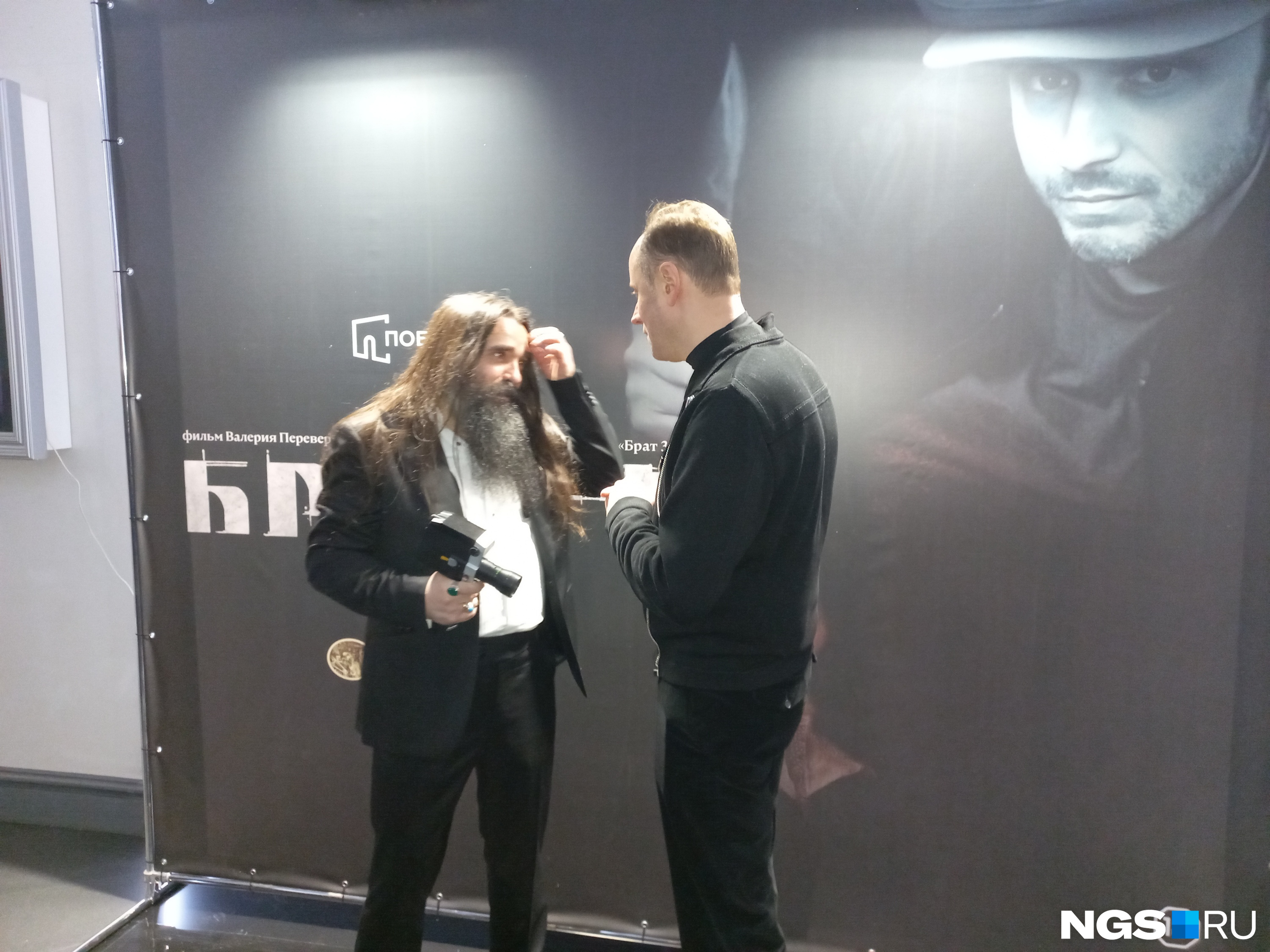 Режиссер Валерий Переверзев появился в кинотеатре минут за двадцать пять до начала. Знаменитая борода, черный костюм с развязанной бабочкой — и неизменная камера «Кварц» в руке, которую он за все время встречи выпустил из рук ровно два раза. Когда после показа общался со зрителями — и когда дарил цветы пришедшей на премьеру теще (она родом из Новосибирска). Сама супруга режиссера Юлия Переверзева в родной город не прилетела, Валерий объяснил — жена в положении, семья ждет третьего ребенка. Кстати, приехали на премьеру и артисты новосибирского коллектива «Папины дети» — они участвовали в саундтреке картины. Правда, на сам показ дети не остались — не позволил возрастной ценз.