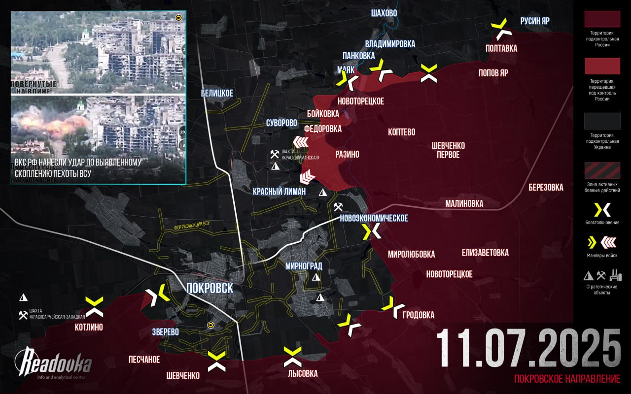 ВС РФ начинают наступление на населенные пункты севернее Мирнограда — итоговая сводка Readovka к исходу 11 июля